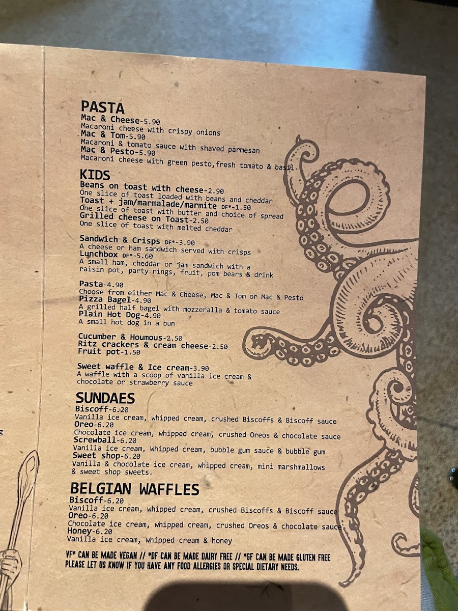 If you're in the mood for something heartier, their pasta offerings are a must-try. Imagine a creamy Mac & Cheese (£5.90) warming your soul or experiencing the delightful fusion of flavors with Mac & Tom or Mac & Pesto, all at an approachable price. There’s also a special menu dedicated to kids, ensuring that the little ones have a wholesome meal and plenty of options to enjoy, from Beans on Toast with Cheese (£2.90) to the sweet indulgence of a Sweet Waffle & Ice Cream (£3.90).